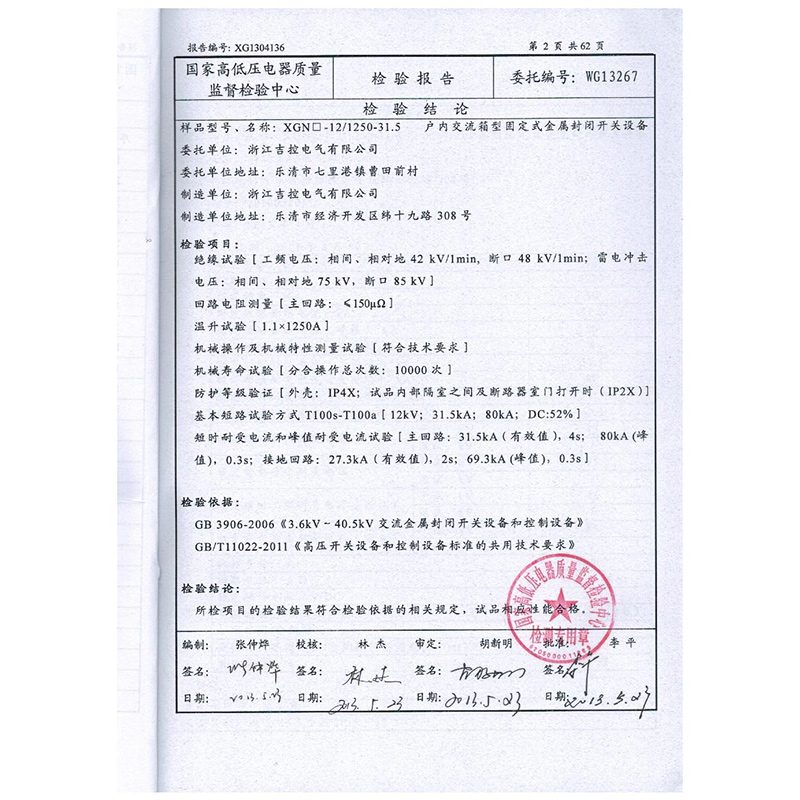 SF6半絕緣環(huán)網(wǎng)柜檢驗報告